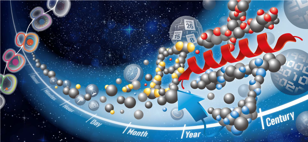 生命には、約24時間周期の概日リズムをはじめ、心拍、体節形成、季節応答、一斉開花など、秒単位から年単位まで、様々な時間スケールのリズムがみられます。本領域では、このように周期的な生命現象や、時をカウントするタイマーのような仕組みに着目し、多様な「時」を生み出す分子メカニズムを解明します。